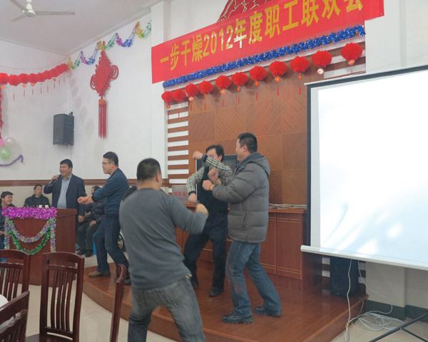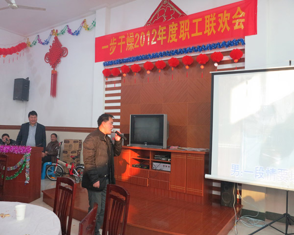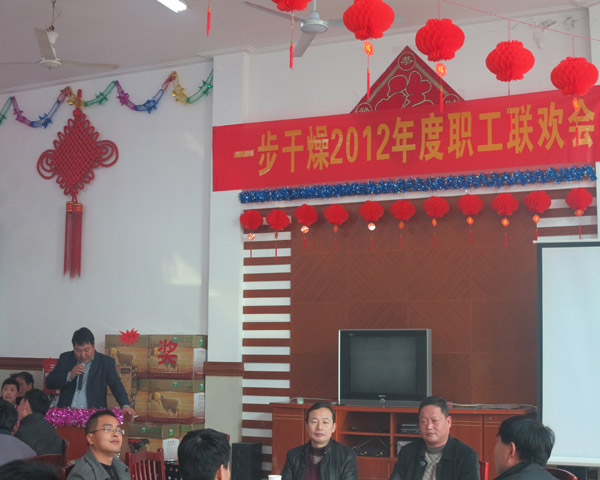 下午14:00,在精心布置的会场中,全体员工欢聚一堂。2012年度职工联欢会由销售副总主持。在联欢会上查总、生产副总、财务副总分别致辞。查总在联欢会上总结了2012年公司所取得的成绩,成绩的取得来之不易,凝聚着全体员工的辛劳和汗水。借此机会,查总向战斗在销售、现场制作、售后服务,车间生产一线的同志表示^衷心的感谢,向技术部、财务、生产、质量、办公室等所有从事技术、管理、行政、后勤的同志表示^诚挚的问候。向长期关心支持一步公司发展的上级领导、各界人士表示衷心的感谢。对广大国际、国内忠实的客户对一步干燥产品厚爱认可表示深深的谢意。展望2013,公司将继续坚持科技创新,加强新品开发,开展产学研合作,争取推出2-3新产品,不断满足市场的需求。坚持市场开发,根据市场的变化,不断调整市场策略,扩大产品在市场上的占有率。2013年1月份我们就有近三千万元合同订单已成功签约,为我们在新的一年开好头,实现产值、销售双超亿的年度目标奠定了良好的基础。2013我们坚信,只要团结一致,携手并进,开拓创新,公司的明天一定会更好。^后查总向大家拜个早年,祝愿大家在新的一年里身体健康,万事如意,合家幸福。