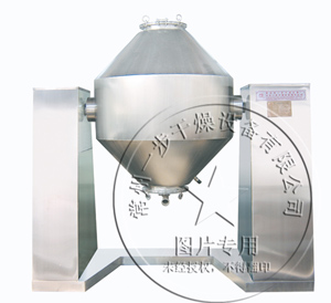 本机将粉末或粒状物料通过真空输送或人工加料到双锥容器中,随着容器的不断旋转,物料在容器中进行复杂的撞击运动,达到均匀的混合。